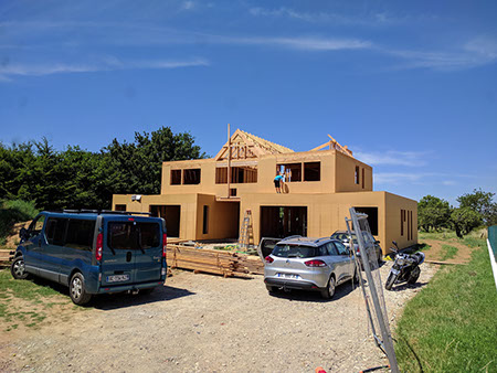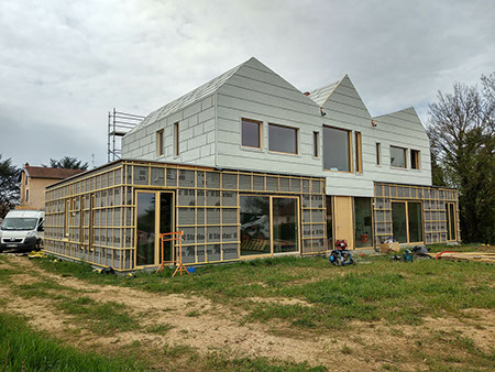 De nombreuses logiques et systèmes techniques à la fois simple et vertueux ont été mis en place pour atteindre les objectifs de construction responsable: ossature bois avec utilisation uniquement de la filière bois locale uniquement (<50 km), récupération des eaux pluviales, utilisation de l’énergie solaire (eau chaude), exploitation des apports solaires passifs, chaudière bois, isolation laine de bois et ouate de cellulose, radier massif chauffant isolé en sous face par verre cellulaire pour inertie, étanchéité à l’air niveau passif, menuiseries bois avec triple vitrage.