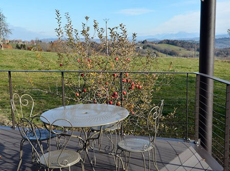 L’objet du projet était, entre autre, de protéger l’intimité des habitants de la maison tout en leur proposant une expérience de projection dans le paysage. Ce dernier est double, composé au Sud d’une canopée et à l’Est d’une vue dégagée sur un massif des Alpes (le Parmelan). A noter qu’au Sud, lorsque les feuilles tombent, une vue filtrée par les branches s’ouvre sur le lac d’Annecy.